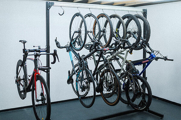 Im Vergleich zu klassischen Abstelllösungen ermöglicht Stashed eine enorme Platzeinsparung von bis zu 50 Prozent, abhängig von Raum, Bike-Typen und Anordnung. Gerade dort, wo Fläche begrenzt ist, macht das System einen entscheidenden Unterschied. Jeder Zentimeter wird sinnvoll genutzt, ohne dass der Zugriff auf einzelne Bikes erschwert wird.