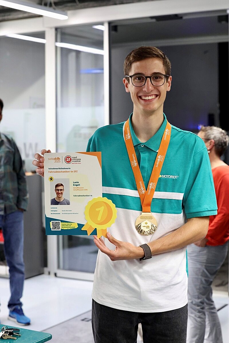 Während fünf Tagen zeigten die besten Nachwuchstalente der Schweiz eindrücklich, was in ihnen steckt. Diese Gelegenheit bieten die «Swiss Skills» bei der jährlichen Berufsmeisterschaft in Bern. Seit vier Jahren treten auch Lernende aus den Zweirad-Fachberufen beim Wettbewerb an. Sieger der diesjährigen Austragung ist der angehende Velomechaniker Lorin Engeli aus Schaffhausen. Der 18-Jährige setzte sich im Wettkampf durch und holte sich den Titel des Schweizermeisters.